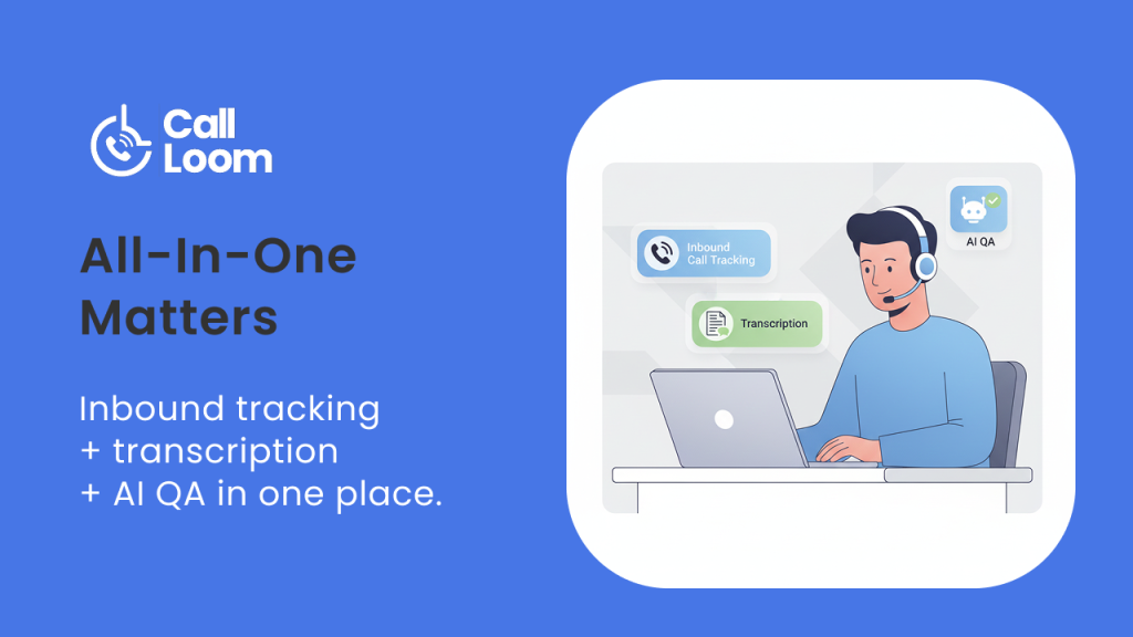 For call centers managing high-stakes inbound volume, the era of fragmented software is over. By unifying high-fidelity inbound call tracking, automated call transcription, and objective AI QA in a single platform, Call Loom provides the all-in-one command center necessary to drive consistent quality, maintain strict compliance, and maximize the return on every marketing-driven phone call.